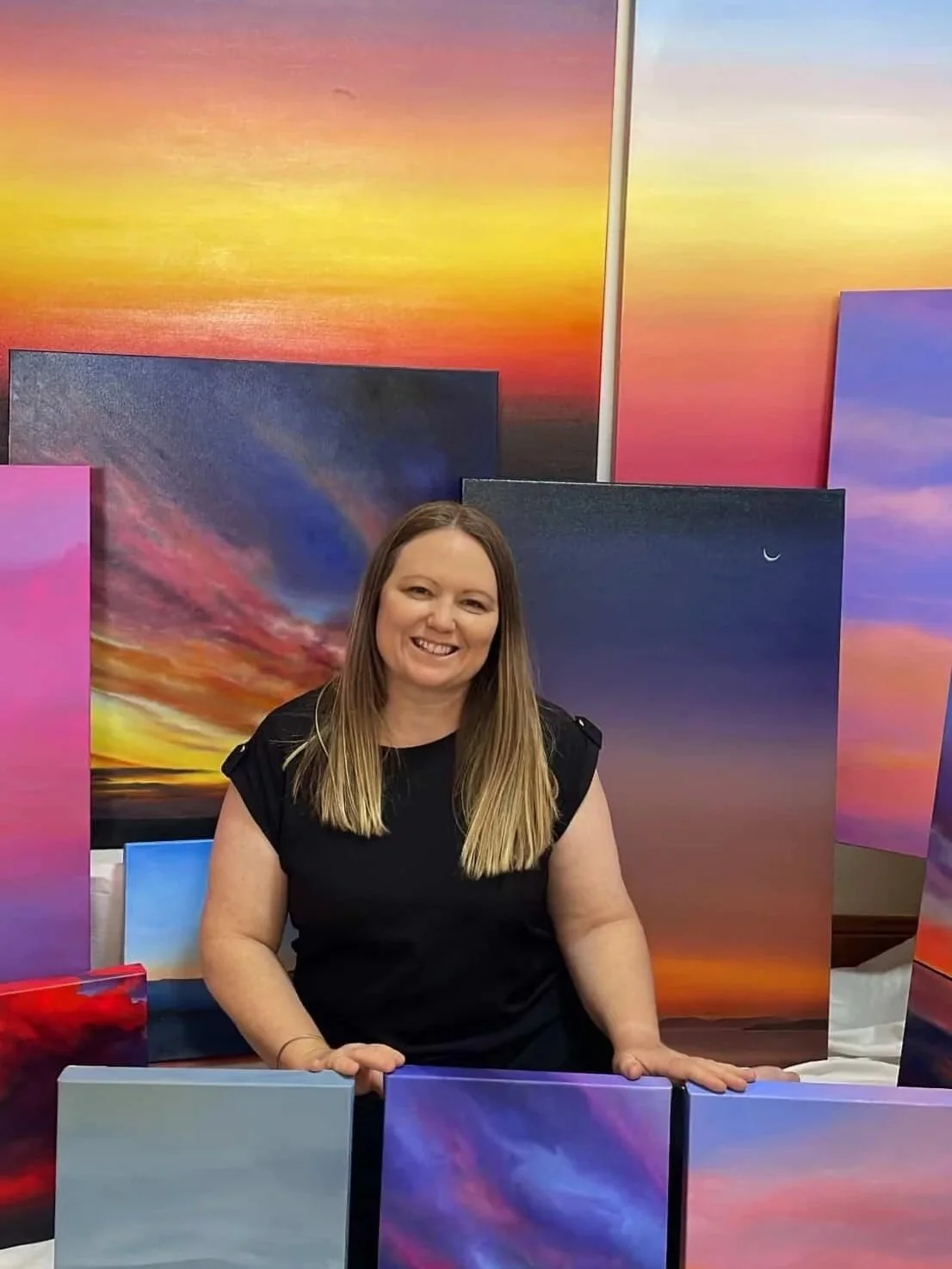 The Held Free: Skyscapes series was created in response to the beautiful space at Lambert Estate Wines in Angaston. For a community that values the seasons and process, Adele has painted expansive, layered skyscapes on her largest canvases to date. This work reflects on the sky as something that holds, contains and connects us while remaining endlessly open. The result is an immersive meditation on mood and atmosphere that is deeply enriched when experienced in person. The artworks in Held Free were made slowly and with attention, and are intended to live quietly with their viewers, holding space rather than asking for it.